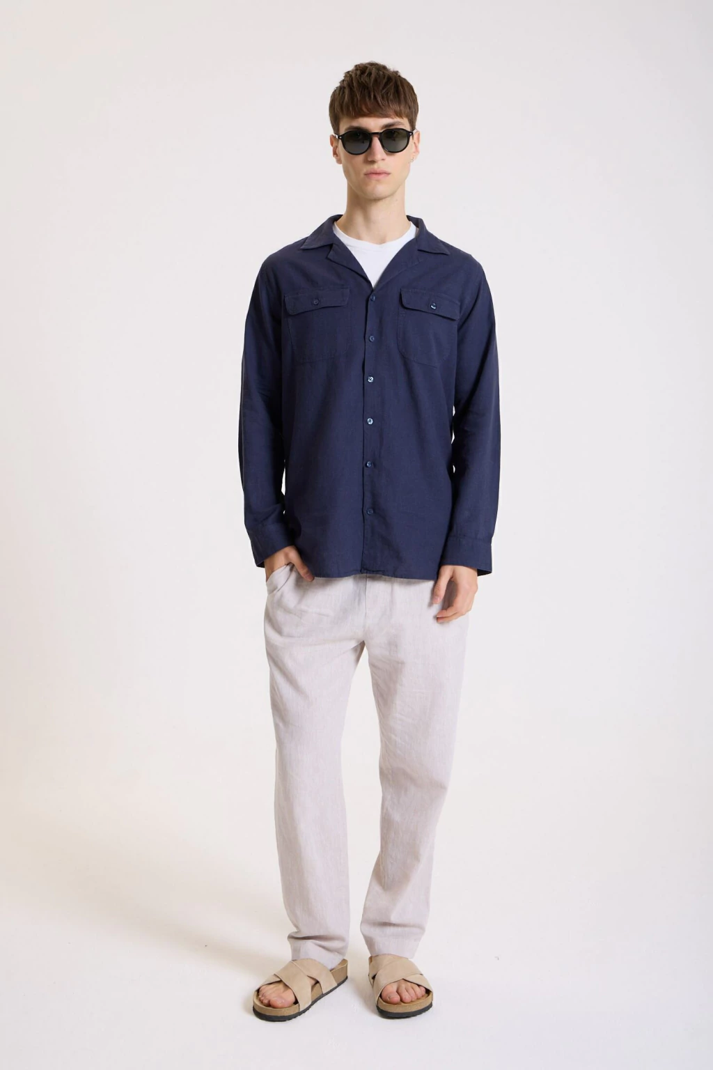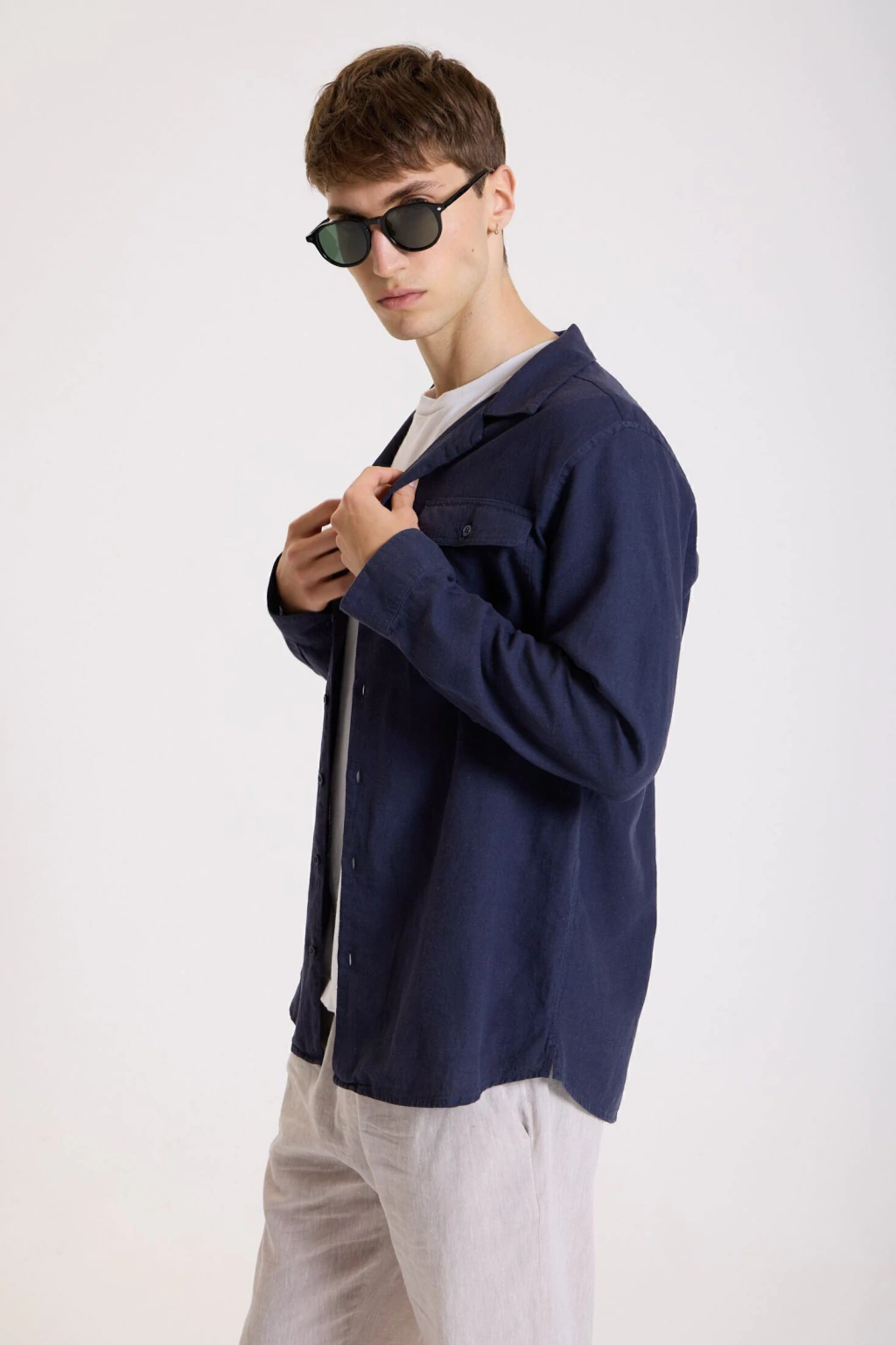 La Camisa Linen Vacay es una opción liviana y elegante para el verano. Confeccionada en una mezcla de 55% lino y 45% algodón, ofrece una excelente respirabilidad y un tacto suave sobre la piel. Su calce slim resalta la figura sin ajustar en exceso, ideal para un look relajado pero prolijo.