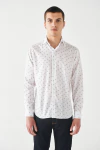Camisa manga larga con cuello clásico y botones nacarados a tono de la base.