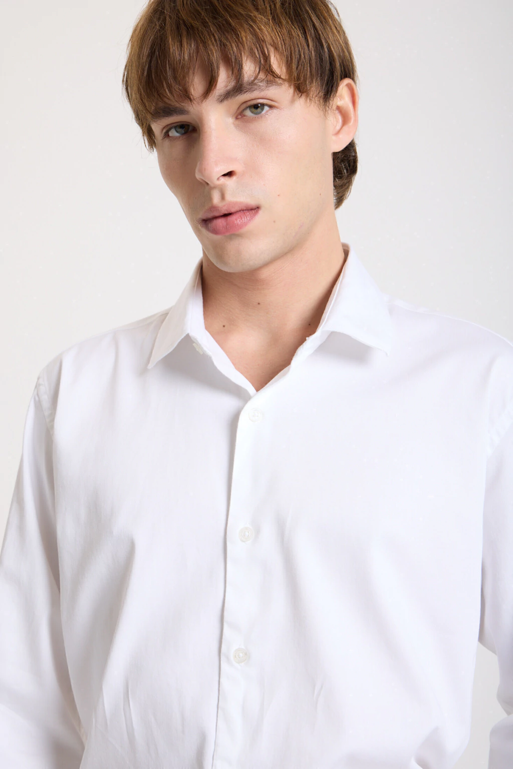 La Camisa Slim Creta es una prenda ideal para quienes buscan un equilibrio entre elegancia y comodidad. Confeccionada en poplin con una composición de 98% algodón y 2% spandex, ofrece un ajuste slim que se adapta al cuerpo sin restringir el movimiento, gracias a su leve elasticidad.