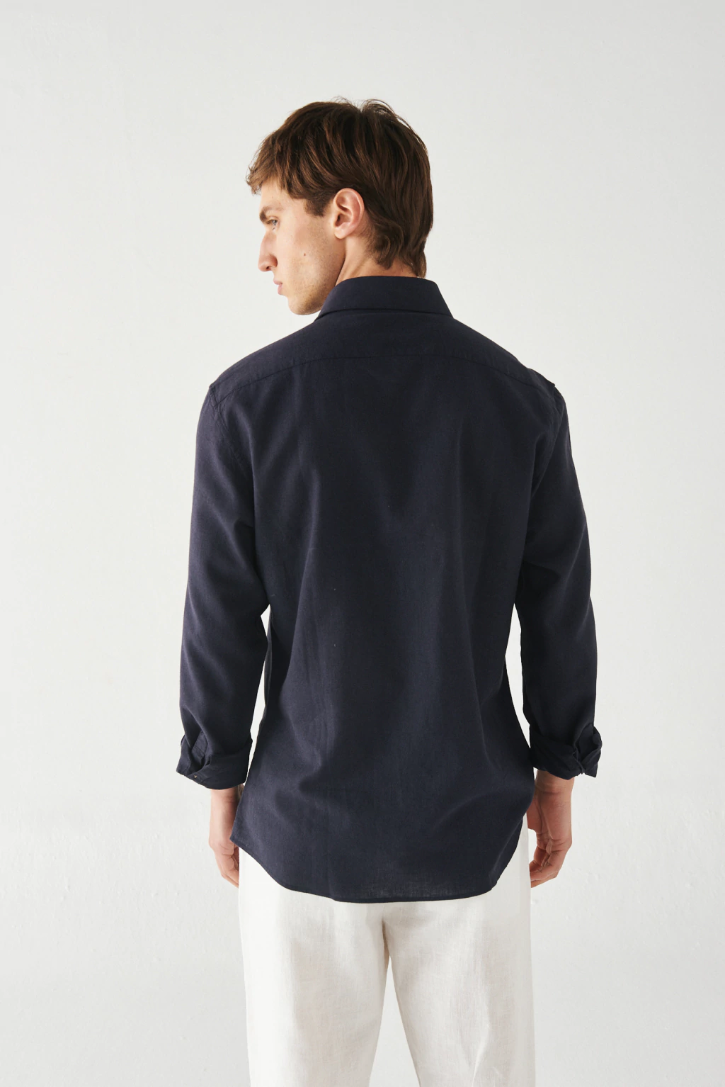 Camisa de manga larga confeccionada en una mezcla de lino (55%) y algodón (45%), perfecta para uso diario, tiempo libre o vacaciones. Su diseño de calce slim brinda un ajuste moderno y favorecedor. Cuenta con un cuello clásico y una práctica cartera con botones marmolados que aportan un toque distintivo. Incluye un bordado PRT en el pecho como detalle de marca. Ideal para un look relajado y elegante, combinando frescura y estilo en cualquier ocasión.