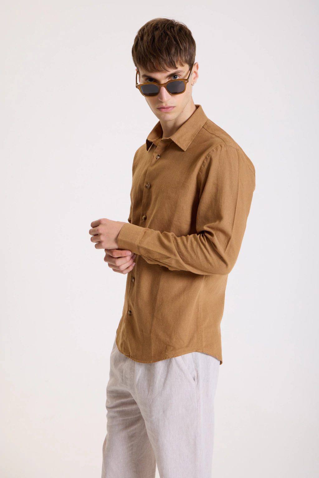 Camisa de manga larga confeccionada en una mezcla de lino (55%) y algodón (45%), perfecta para uso diario, tiempo libre o vacaciones. Su diseño de calce slim brinda un ajuste moderno y favorecedor. Cuenta con un cuello clásico y una práctica cartera con botones marmolados que aportan un toque distintivo. Incluye un bordado PRT en el pecho como detalle de marca. Ideal para un look relajado y elegante, combinando frescura y estilo en cualquier ocasión.