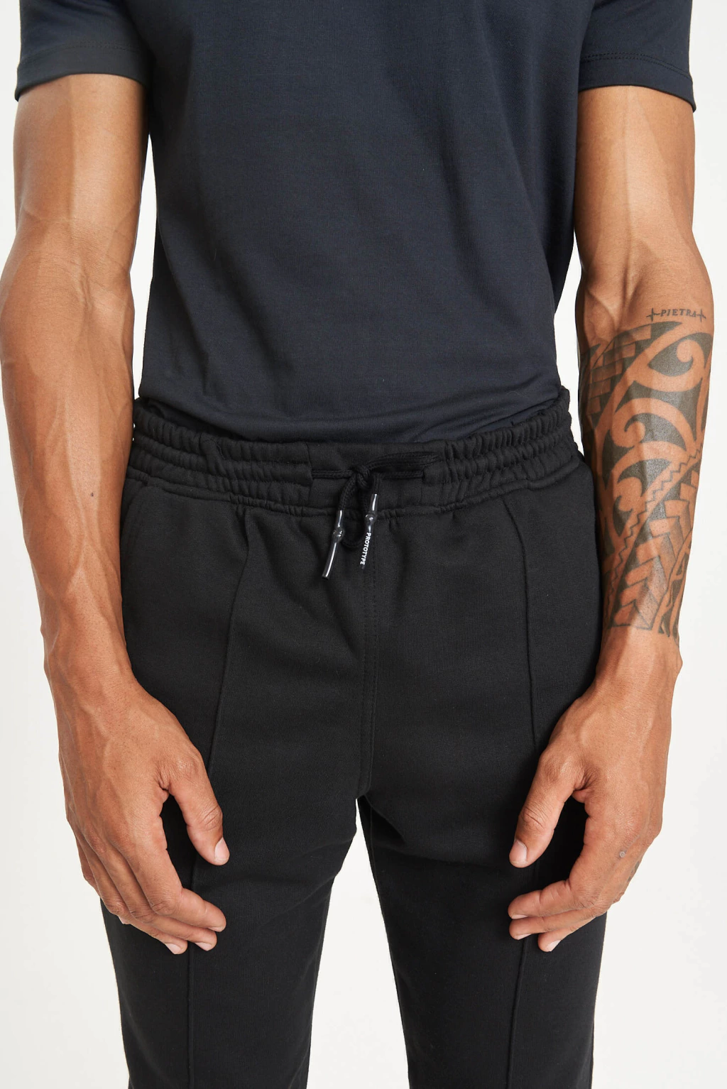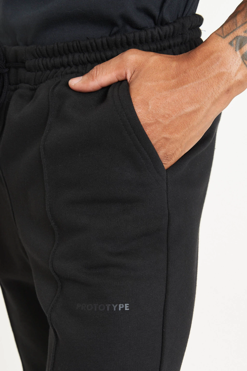 Cuenta con cintura elástica con cordón plano regulable, puños de ribb altos (7 cm), bolsillos laterales amplios y bolsillo trasero con vivo. Incluye una estampa vinílica al tono aplicada a la altura de la pierna para sumar identidad sin recargar el diseño.