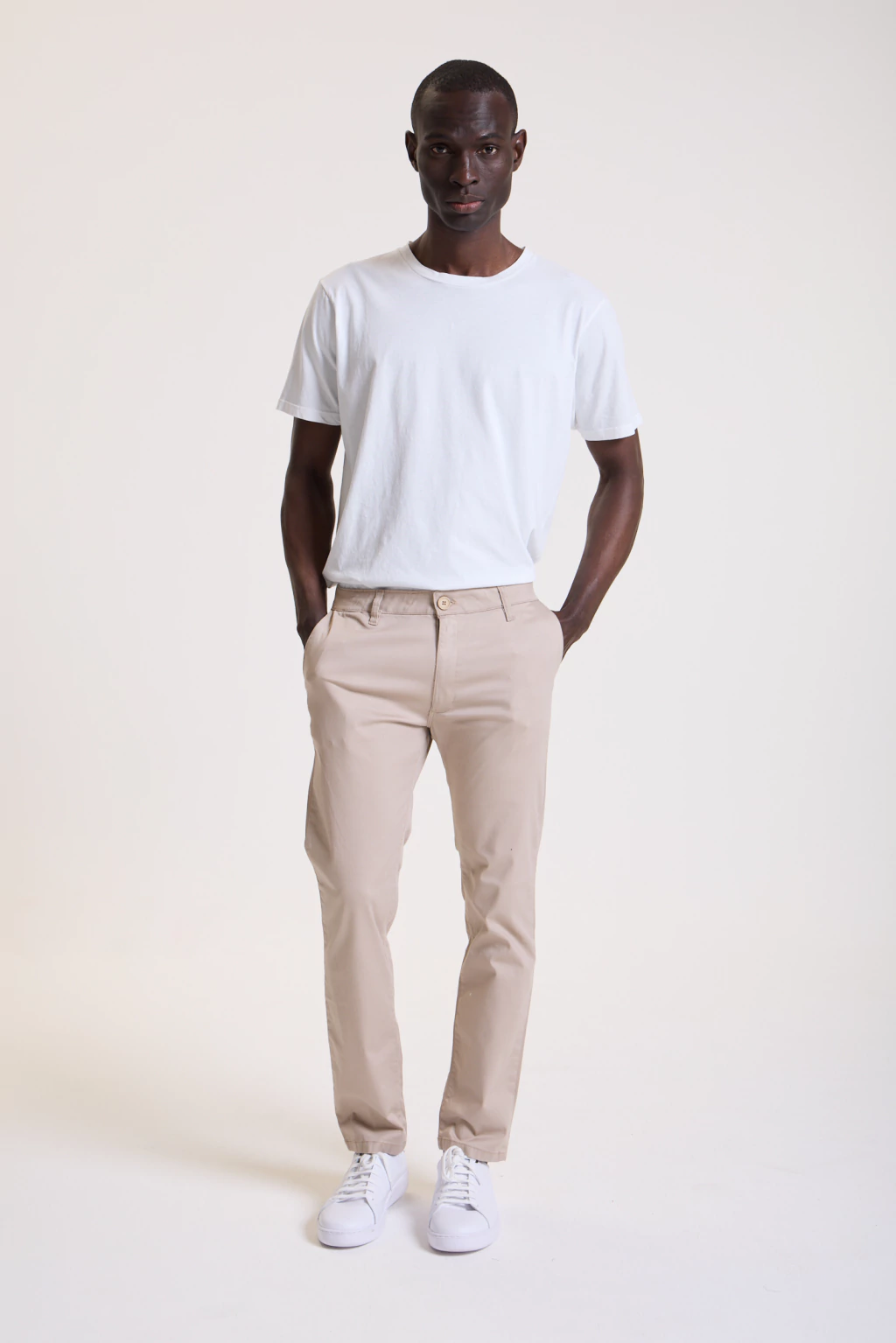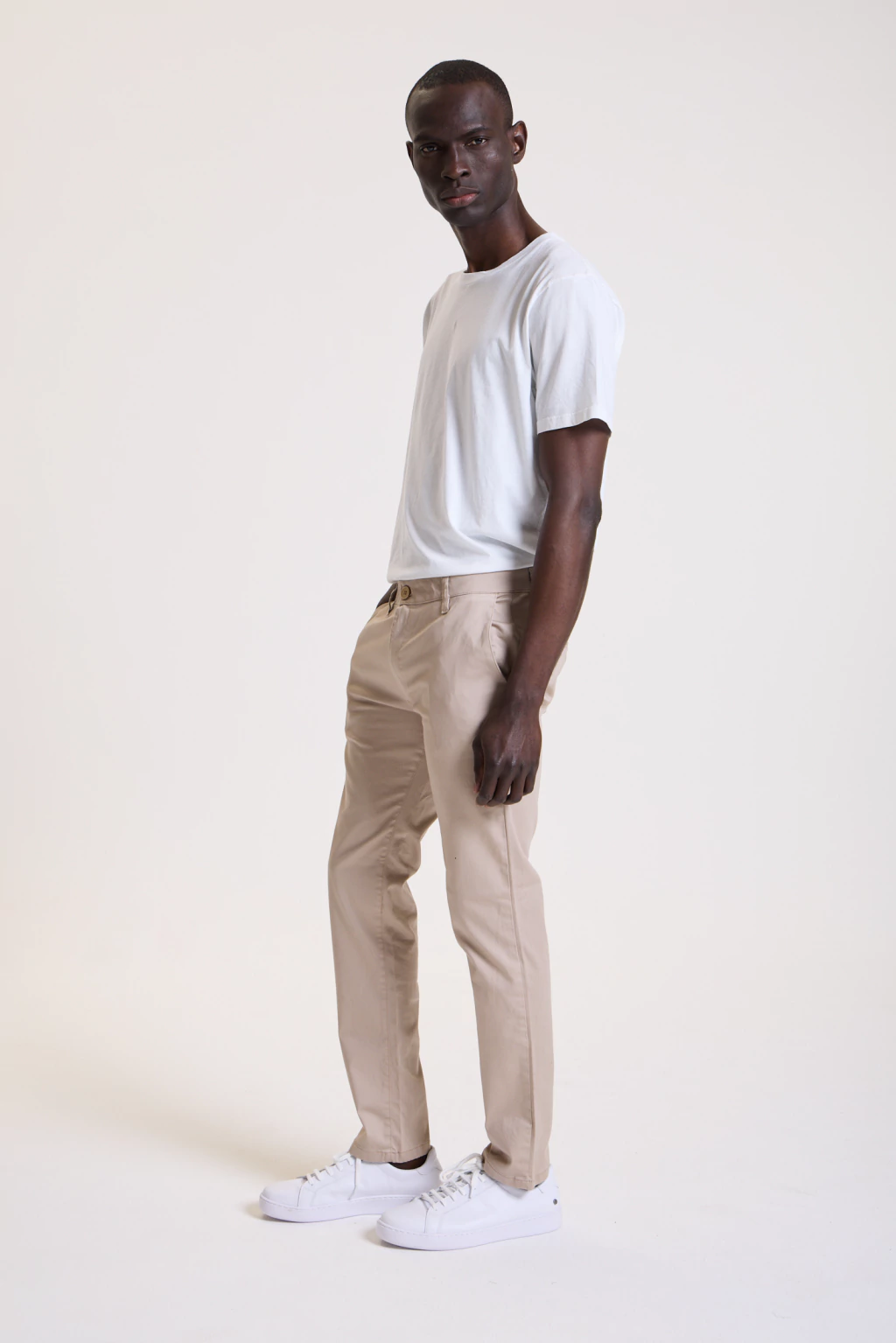 Con bolsillos delanteros americanosy bolsillos traseros con 2 vivos, botón y grifa tejida.