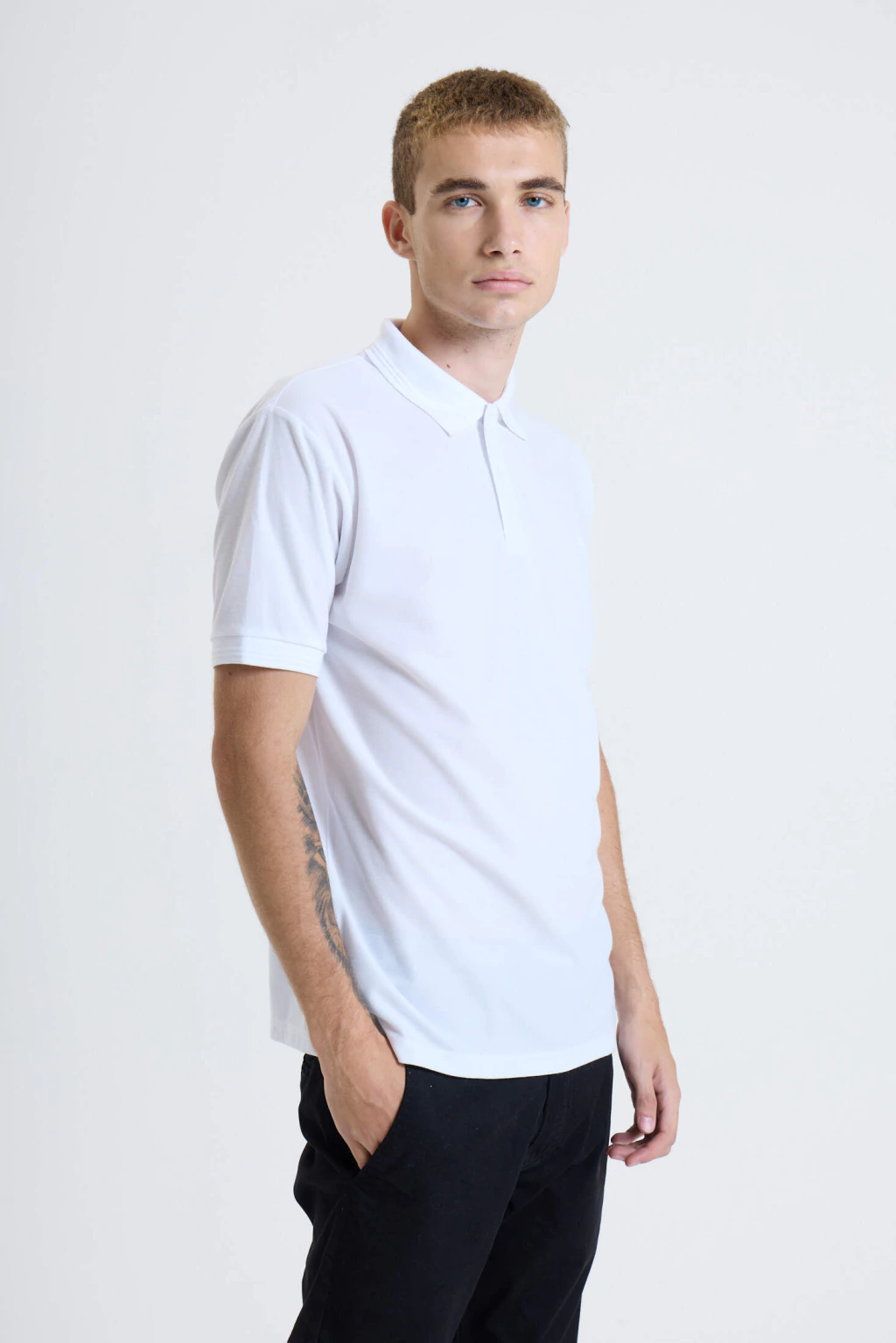 Está confeccionado en tejido de algodón con detalles cuidados como bordado frontal a tono y re-etiquetado personalizado. El diseño clásico de cuello con tapeta y botones, sumado a su amplia variedad de colores como negro, blanco, azul marino, gris melange, celeste, beige y salmón, lo convierte en un básico infaltable en el placard masculino.