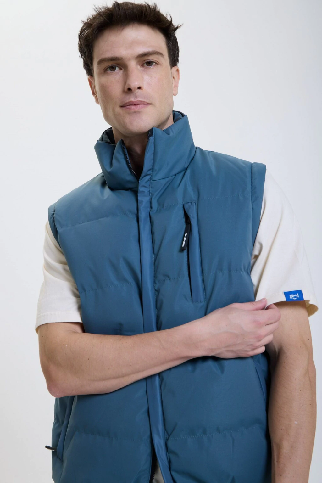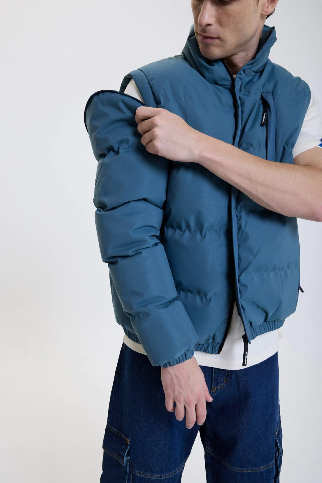 El diseño incluye cierres metálicos ocultos con capa de nylon brillante al tono y detalles en silicona 3D, aportando un look moderno. Cuenta con mangas desmontables mediante cierre escondido, lo que permite convertirla fácilmente en chaleco.