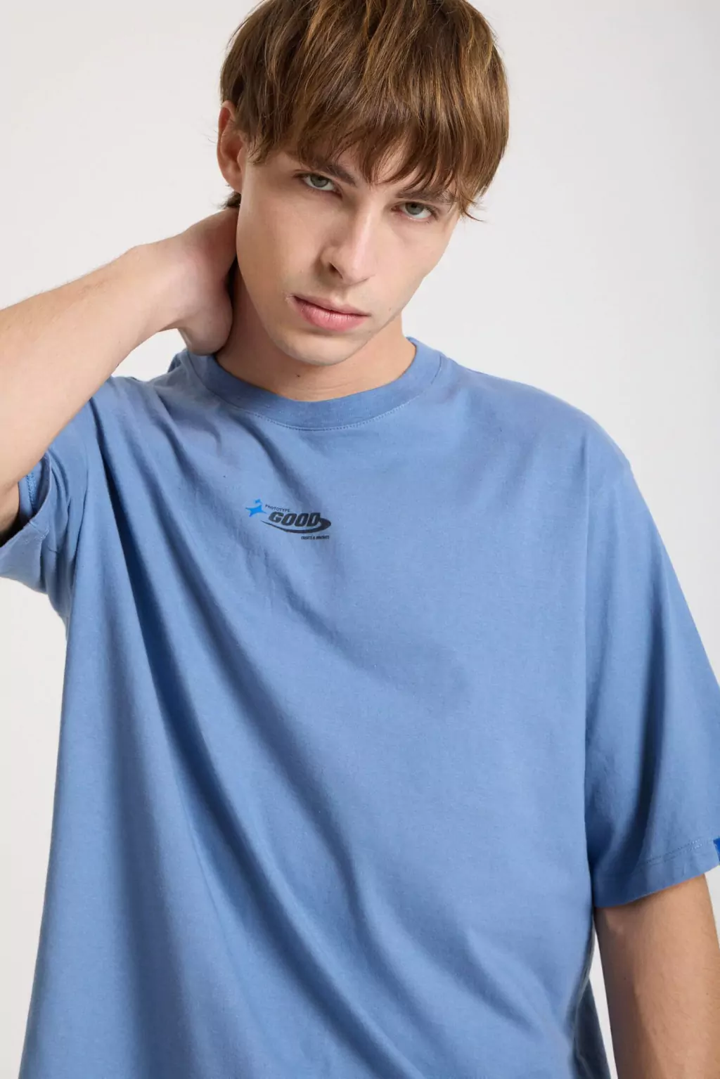 REMERA PRINT GOOD: La elección perfecta para un look diario. Confeccionada en jersey 24/2 de 100% algodón, esta remera básica ofrece un calce oversize y cuenta con un diseño de estampa de temporada en el frente y la espalda. El cuello redondo aporta comodidad y estilo. El modelo usa un talle M.