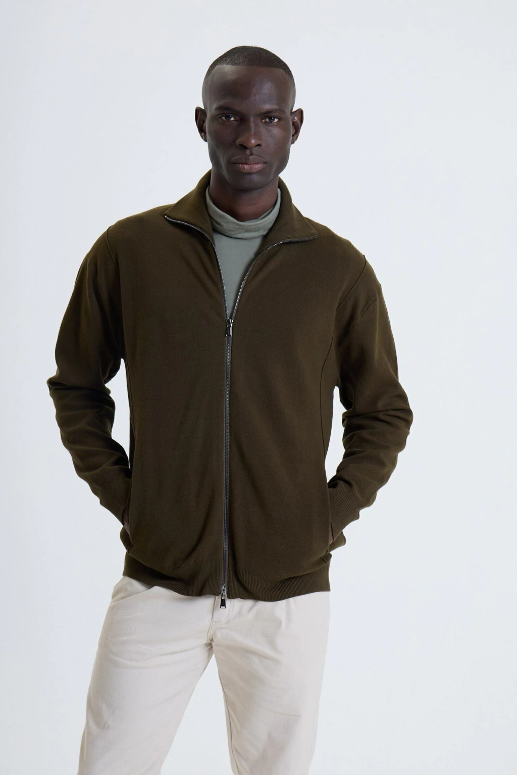 El Sweater Fred es una prenda tejida con cierre completo, ideal para abrigarte sin resignar estilo. De calce regular, es perfecto para combinar con camisas, remeras o incluso camperas livianas, brindando versatilidad en looks de invierno.