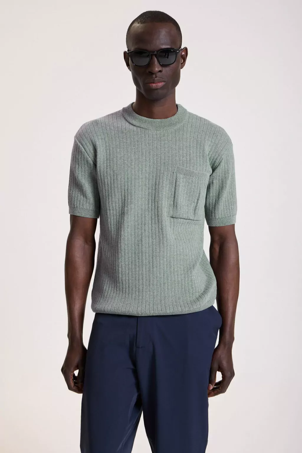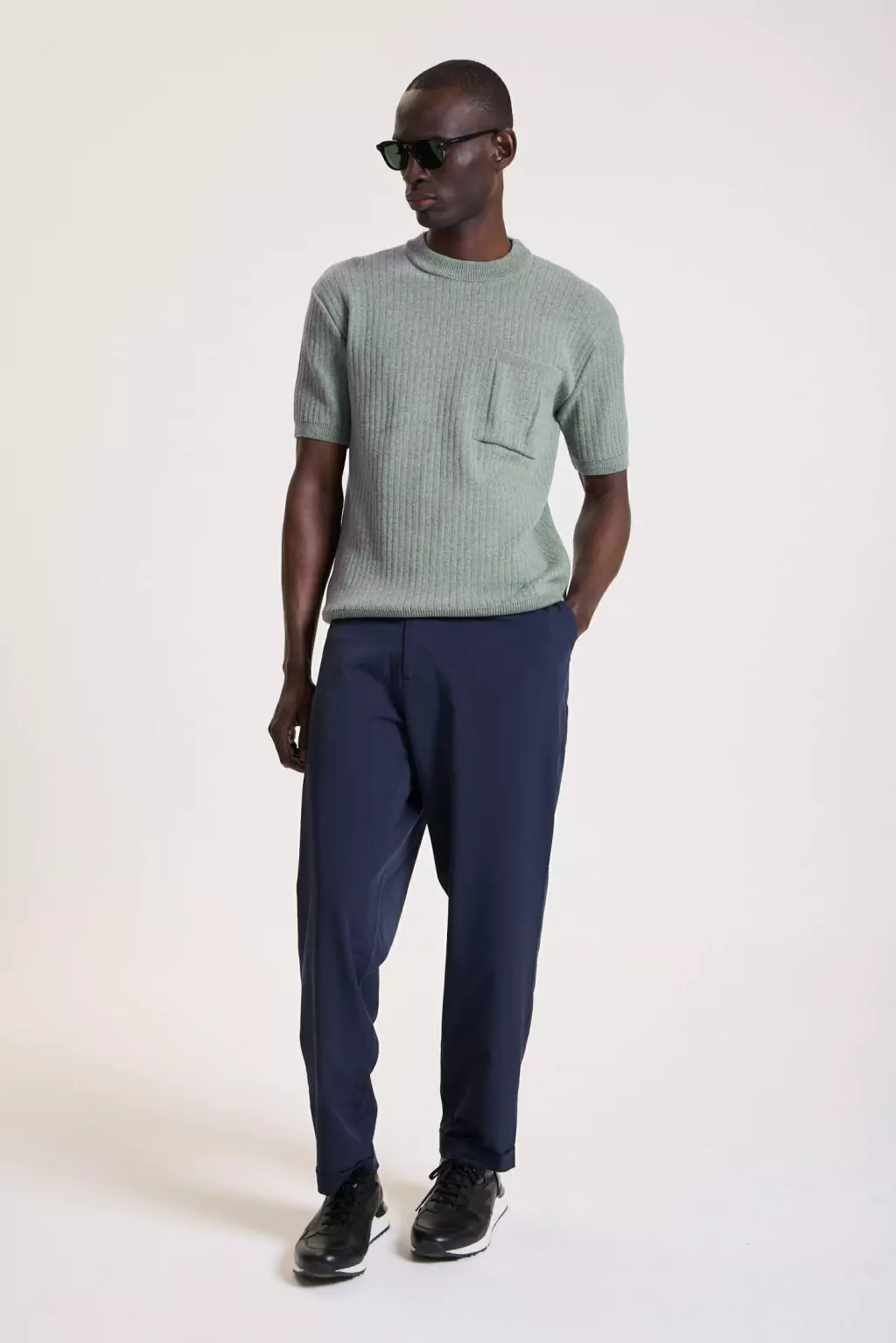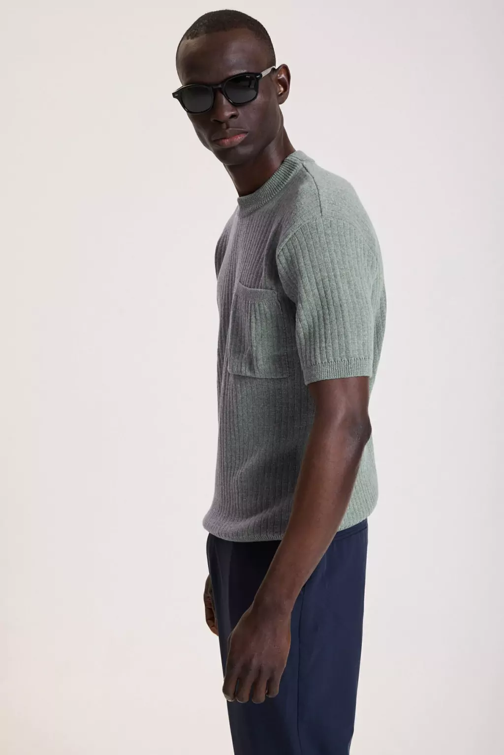 Este sweater manga corta está confeccionado en tejido de canaletas verticales 100% algodón, ofreciendo una textura cómoda y elegante. Incluye un bolsillo plaqué en el pecho, decorado con un avío metálico personalizado que le da un toque distintivo. Los puños de las mangas y la cintura presentan un acabado de punto acanalado que aporta estructura y estilo al diseño. Perfecto para ocasiones de estilo elegante sport, combinando versatilidad y elegancia en una prenda ideal para el día a día.